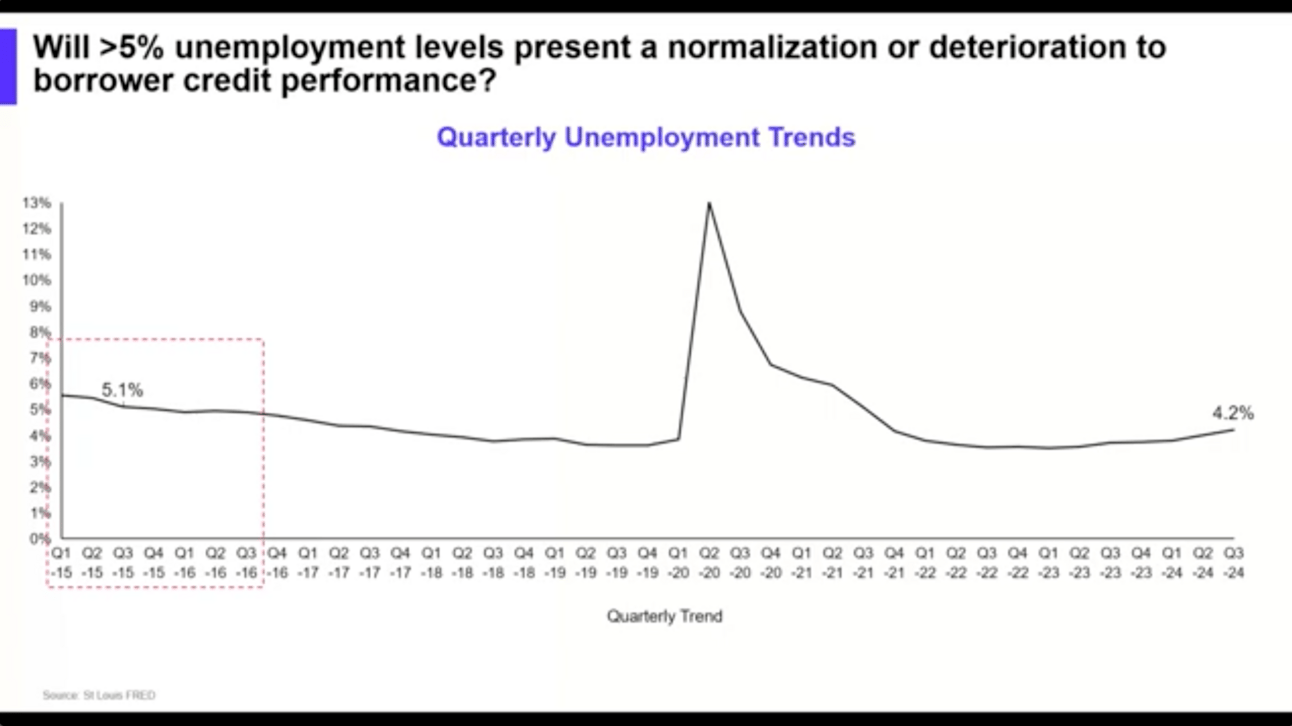 They also raise the question of how credit quality will change if unemployment rises above 5%. Deterioration? normalziation? Recession? [Listen at the 41:06 mark]