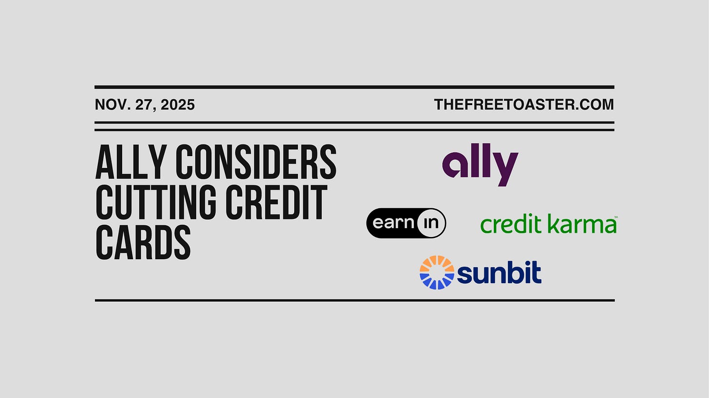 (11/22) Ally Financial is considering selling its credit card business just three years after acquiring it for $750 million. The Detroit-based auto lender, which reported $2.1 billion in average credit card loans in Q3, is working with a financial adviser to explore options. This potential sale reflects a retreat from the fiercely competitive credit card market, where Ally faces heavyweights like Capital One. Ally’s credit card ventures have faced turbulence before, including a canceled $2.65 billion deal to acquire CardWorks in 2020 during pandemic uncertainty. [Bloomberg]