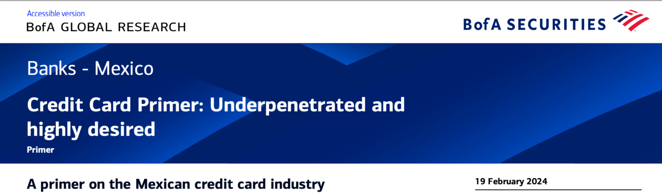 To help us understand the opportunity TransUnion sees, we found a great “Credit Card Primer” on Mexico from BofA Securities published in February 2024.