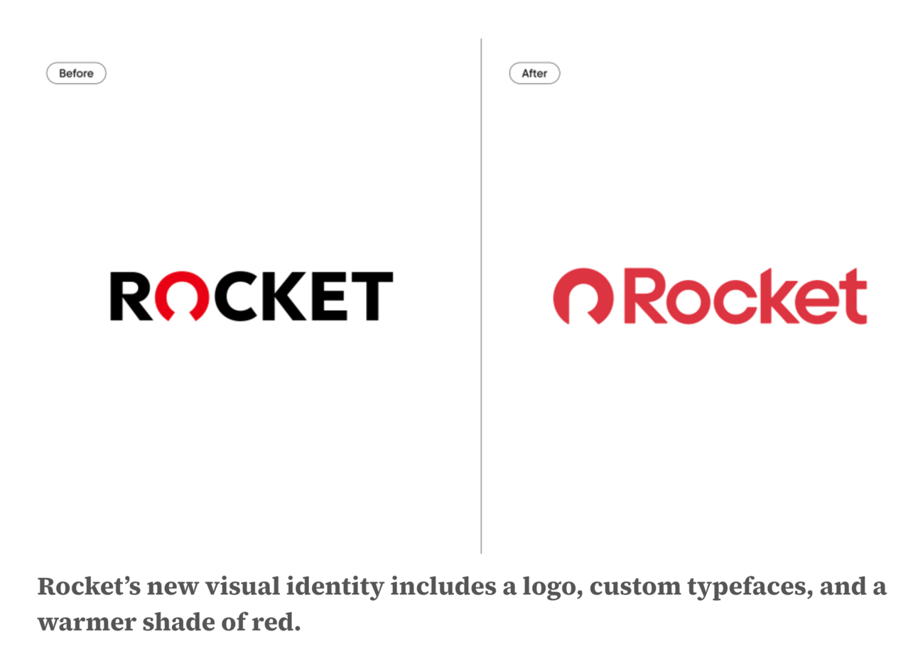 (1/21) Rocket Companies, the fintech giant behind mortgage, real estate, and financial services brands, unveiled a sleek rebrand featuring a new logo, wordmark, and softer color palette aimed at appealing to women, Gen Z, and the Hispanic community. Led by CMO Jonathan Mildenhall, formerly of Airbnb and Coca-Cola, the refresh is part of a larger push to simplify homeownership and position Rocket as "culturally significant." The company will reveal its new creative ethos during a Super Bowl 59 ad, promising a shift toward "community-driven storytelling." Meanwhile, Rocket faces scrutiny over a DOJ lawsuit alleging discrimination, which the company denies. [Adweek] [Creative Bloq]