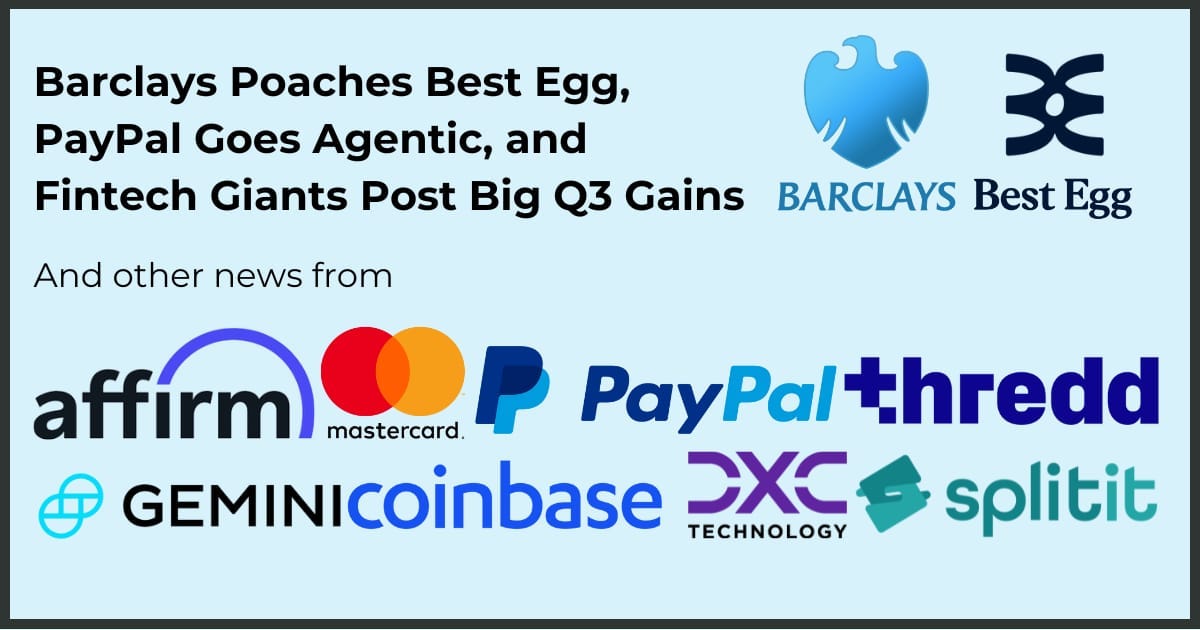 Barclays Poaches Best Egg, PayPal Goes Agentic, and Fintech Giants Post Big Q3 Gains