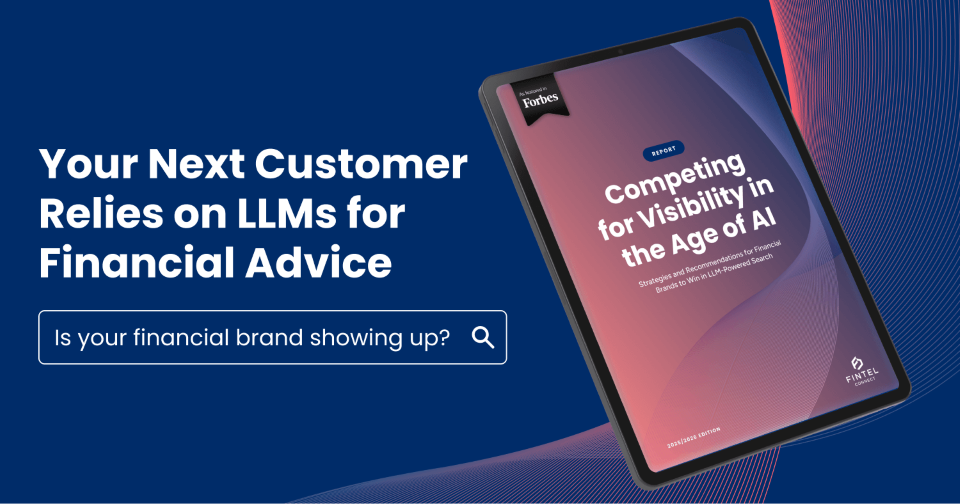 Fintel Connect’s first-of-its-kind report, “Competing for Visibility in the Age of AI“ reveals how large language models (LLMs) - including ChatGPT, Gemini, Perplexity, and Copilot are transforming how consumers discover, compare, and choose financial products. Consumers aren’t clicking through search results anymore - they’re asking LLMs for answers. And who gets cited matters more than ever.