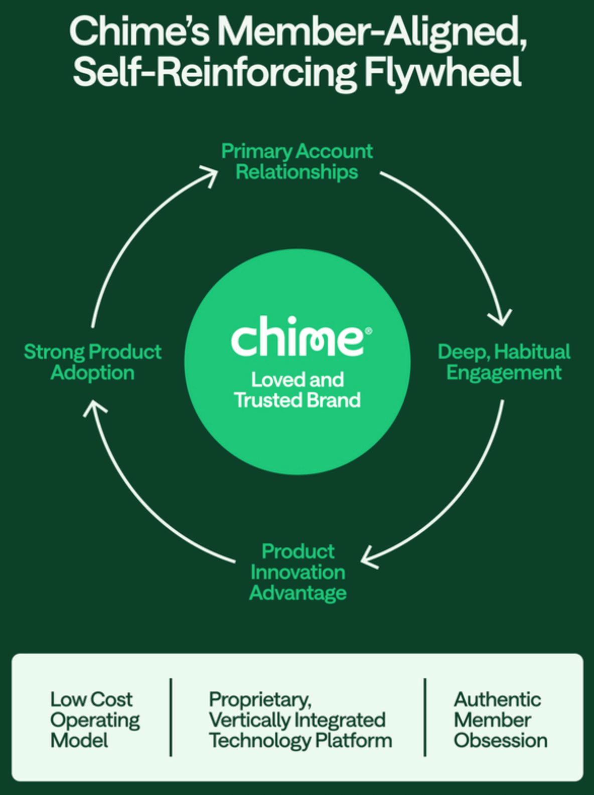 Privileged data and repayment. Chime sees your paycheck, your spend, and your network. They can underwrite and cross-sell with an edge.