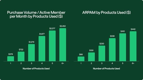 Funnel efficiency compounds. Every product attaches to the next, driving up ARPAM and lowering CAC via referrals. This is clear with an average of 3.3 products per active member and engagement like 141 app interactions per month.