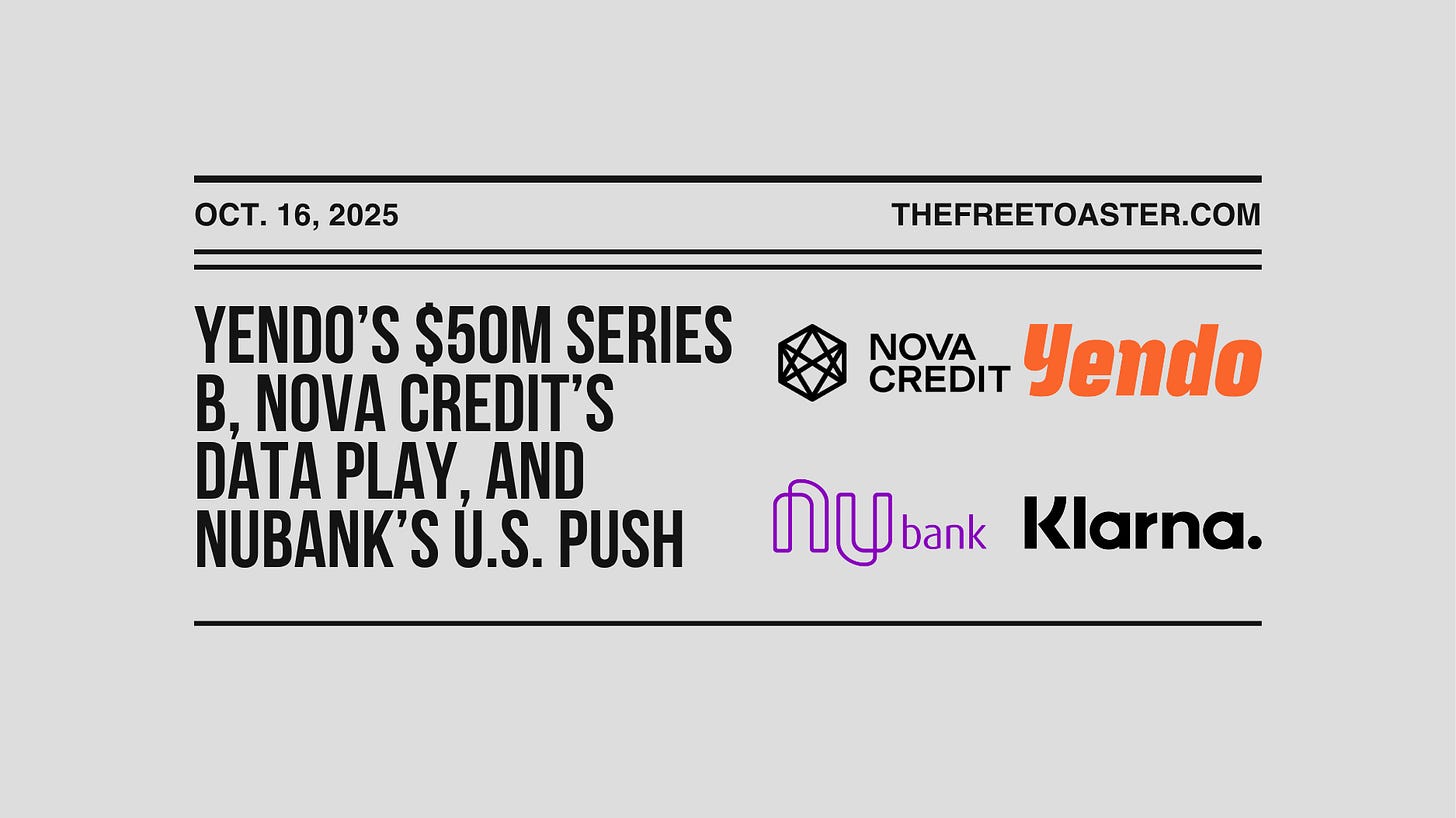 Yendo’s $50M Series B, Nova Credit’s Data Play, and Nubank’s U.S. Push
