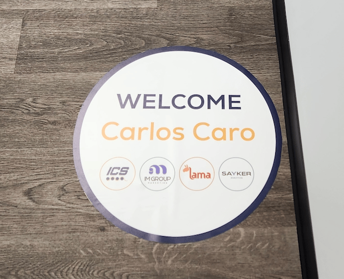 A custom floor mat they printed for me, placed in the hallway between their corporate offices and the production facility.