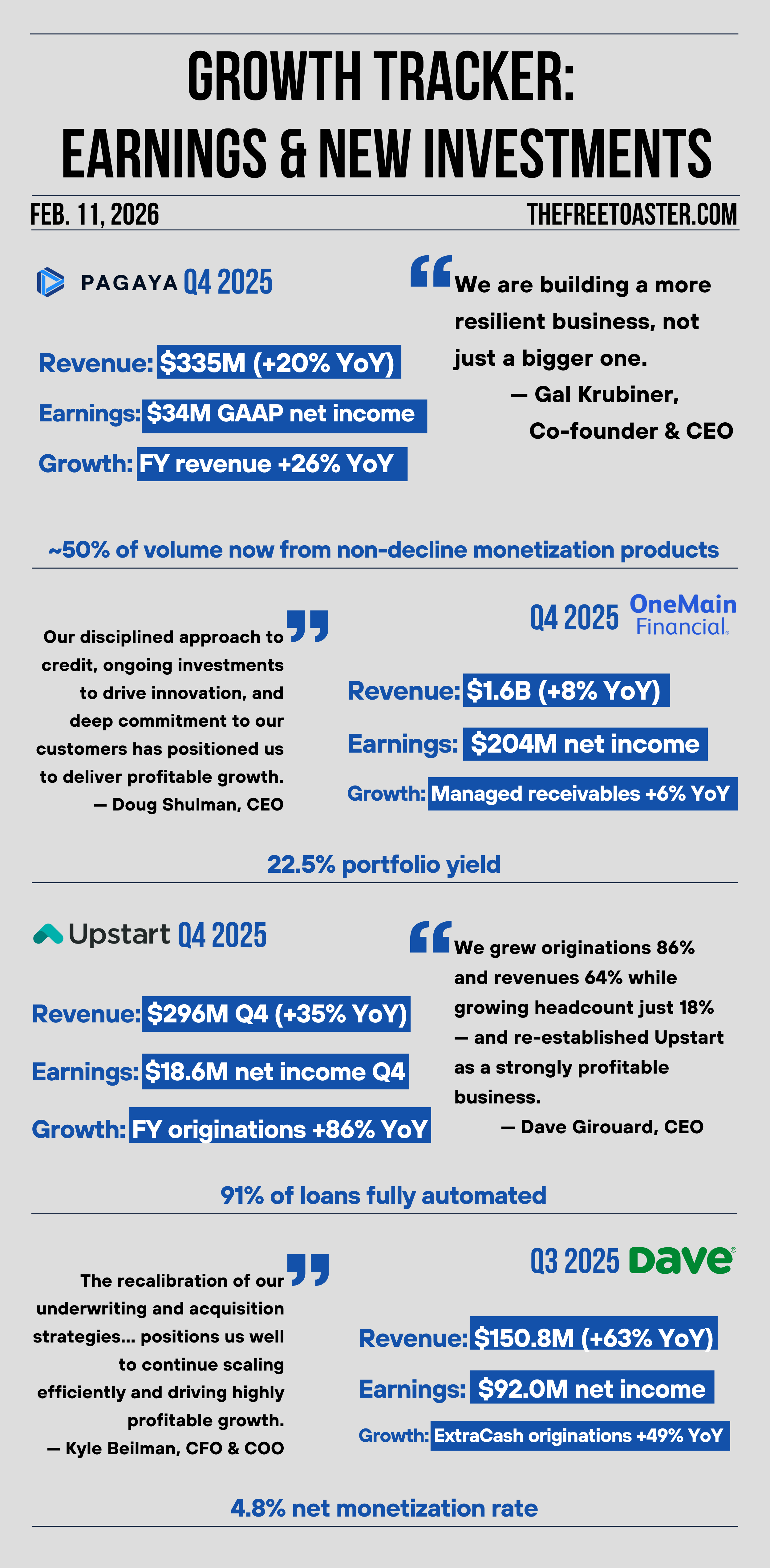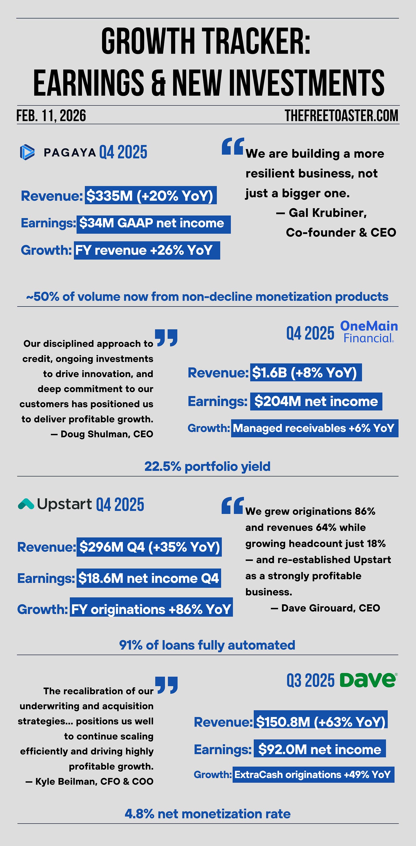 Sources: Pagaya, OneMain Financial, Upstart, Dave