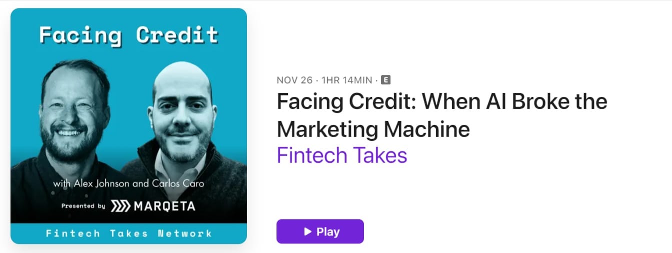 Carlos sat down with Alex Johnson on the Fintech Takes Podcast to talk about how AI is changing distribution for lenders. The discussion touches on the collapse of organic traffic, the shift in acquisition costs, the rise of creator distribution, and what it means for publishers, affiliates, and fintech teams planning for 2026.