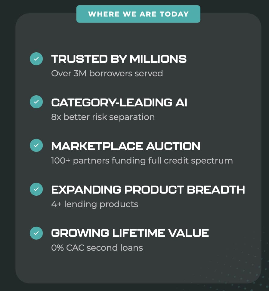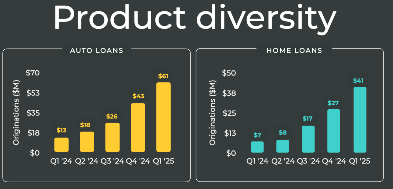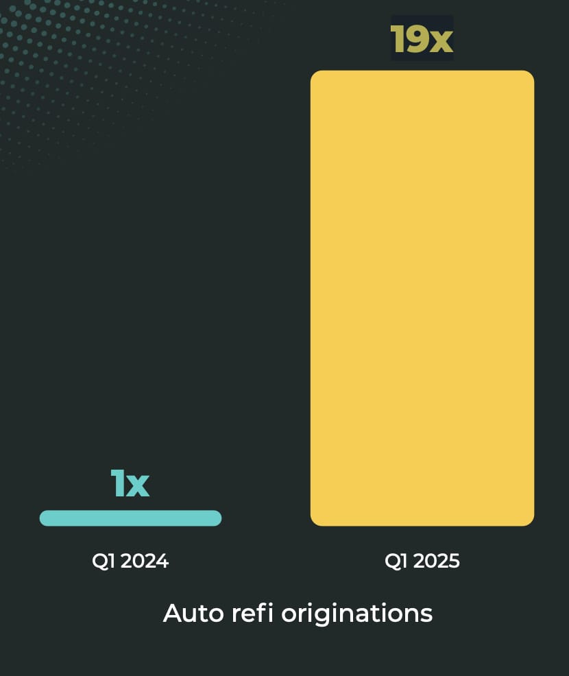 The company notes that the CAC for a second loan to an existing customer is effectively $0. Rapport cited the "Fran" example: a customer who took a personal loan and subsequently refinanced her car through a personalized offer, saving $420 annually. This second loan was reportedly originated at "0% CAC." This product-led growth strategy focusing on existing users contributed to "almost 20X growth year over year" in auto refi, according to Rapport. Auto refinance volume was up 19x year-over-year as of Q1 2025, and their HELOC product is reportedly more than twice as fast as the industry average.