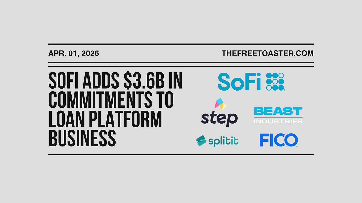 SoFi adds $3.6 billion in new commitments to its loan platform business, reinforcing its shift toward a capital-light model. Meanwhile, Beast Industries’ acquisition of Step is under fire, with Senator Elizabeth Warren issuing a deadline to address concerns over youth safety and crypto expansion. We’re also looking at a new Fed study linking mobile sports betting to a spike in credit delinquencies, FICO’s latest report on falling U.S. credit scores, and Klarna doubling its credit facility to $2 billion to fuel American growth.