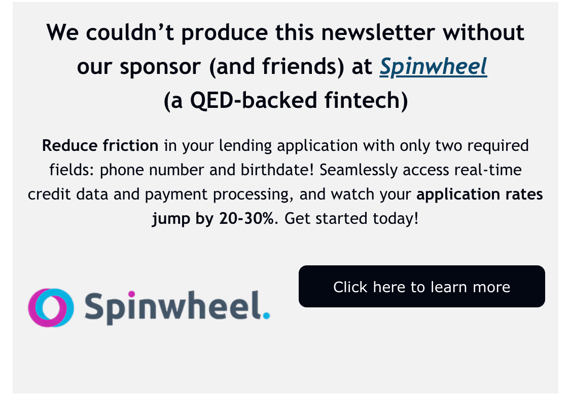 This week is sponsored by our friends at Spinwheel, who provide a simple API for connecting to all types of consumer debt. With Spinwheel, financial apps can offer their users a way to see real-time, verified data and make payments on their student loans, mortgages, or credit cards, all within a single experience. It's important because it simplifies how people manage their debt, often requiring just a phone number and birthdate to connect an account.
