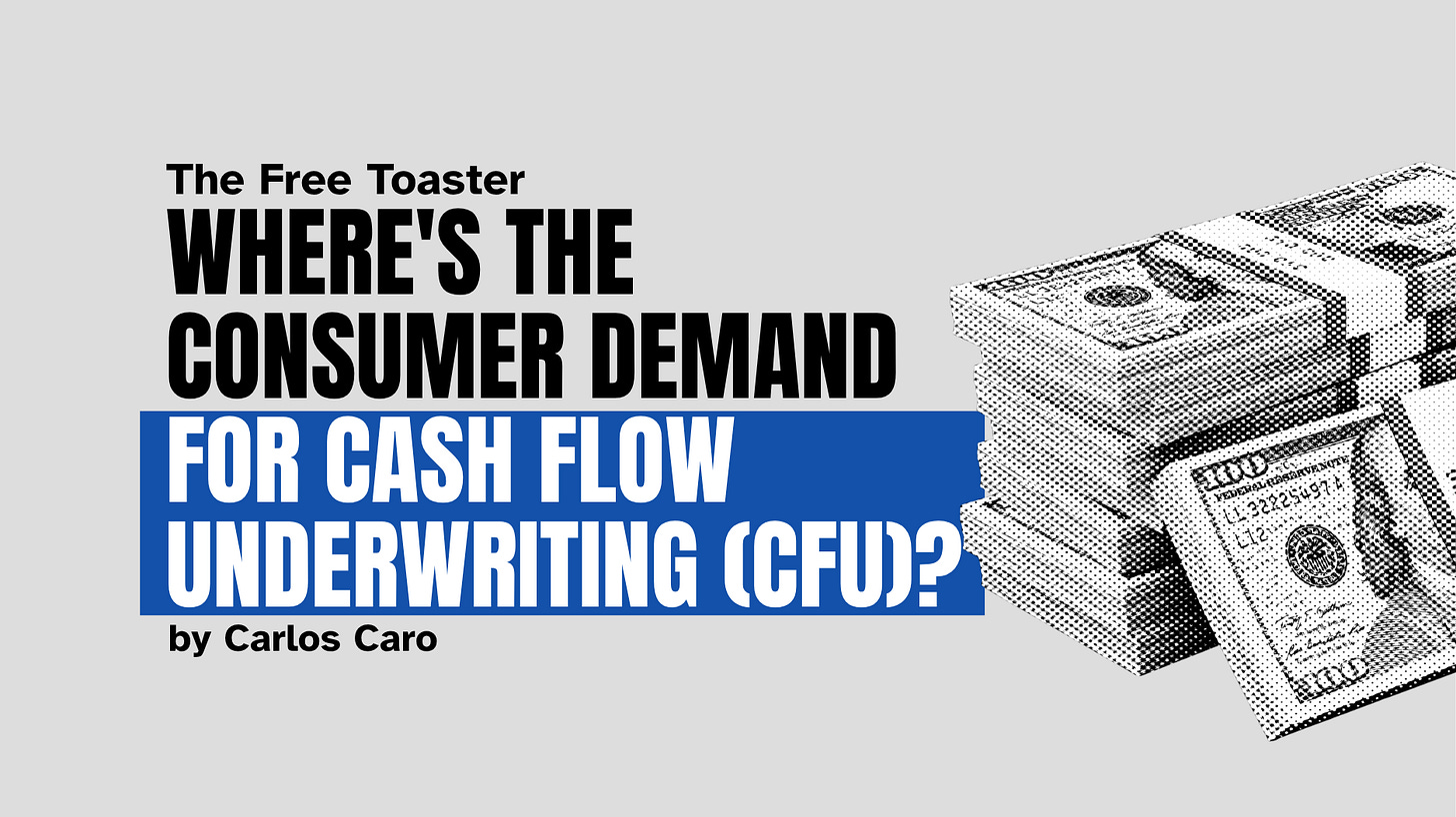 I’m starting to worry that we don’t have an economically viable way to distribute cash flow underwriting (CFU) products to consumers.